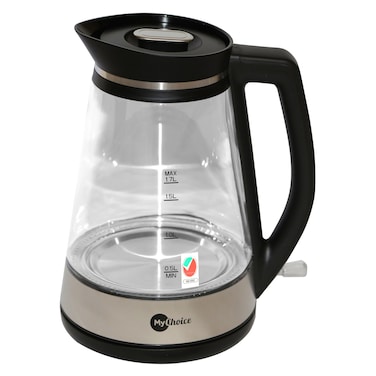 The MyChoice Glass Kettle MKT-301GB in Black and Silver is a stylish addition to any kitchen. With a 1.7L capacity, it's perfect for making multiple cups of tea or coffee at once. The glass design allows you to easily monitor the water level and the sleek black and silver finish adds a touch of elegance to your countertop.