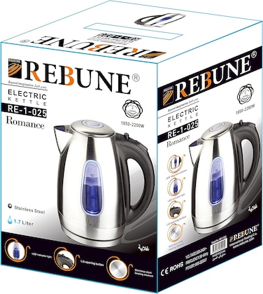 REBUNE RE-1-025 Electric Kettle Stainless Steel Fast for Tea and Coffee, 1.7 Litre, 2200W Silver