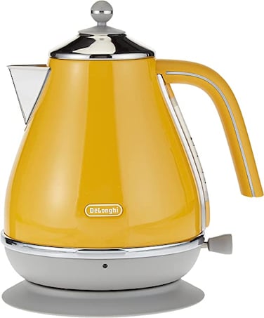 De'Longhi Icona Capitals Yellow Vintage Style Kettle, 1.7 L Capacity With Water Level Indicator, 360 Swivel Base, Anti-Slip Feet, Soft Opening Lid, Premium Stainless Steel, Kboc3001.Y