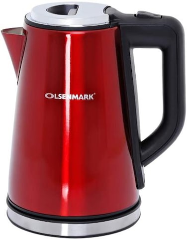 An electric kettle is an essential kitchen appliance that makes boiling water, brewing coffee, and brewing tea simple. Built with precision, the Olsenmark double-walled electric kettle delivers a smooth and efficient boiling experience. The electric kettle is made with 100% food-safe, non-toxic, chemical-free, environment-friendly 304 stainless steel material and is safe to use daily. This electric kettle is designed with a cool-touch body to give you instant access to hot water. It has a large capacity of 2.2L. The kettle is versatile and has multiple utility features, which make it stand out from the rest. The unique features include a safety cut-off, overheat protection, dry boil, indicator light, 360-degree rotation base, concealed heating element, 1500-W motor, and much more. It is suitable for tea, milk, coffee, water, etc. The large and wide diameter makes filling and pouring easier and also makes the kettle easy to clean. The kettle has a handle with an ergonomic grip and does not get heated up. It has a firm grip, even with wet hands. The kettle is also equipped with an ON/OFF switch and light indicators to let you know if the appliance is on or off. The 360-degree base with a concealed heating element makes the kettle handy and portable. Furthermore, the kettle has dry boil and overheat protection features that ensure that the kettle is not overheated. This prevents damage and keeps it safe. It also has a lid that keeps beverages warm and protects them from external contaminants. In a stylish red color, this electric kettle is a must-have item in your kitchen. It is made with quality materials and has a sleek design and a compact size. Plus, it includes a 2-year manufacturer's warranty.
