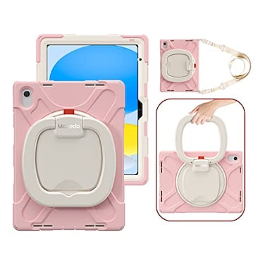 Moxedo Shockproof Rugged Protective Colorful Case with 360 Rotating Kickstand, Shoulder Strap, Pen Holder for Kids Compatible for iPad 10th Generation 10.9 2022 (Cherry Blossom Powder)