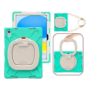 Moxedo Shockproof Rugged Protective Colorful Case with 360 Rotating Kickstand, Shoulder Strap, Pen Holder for Kids Compatible for iPad 10th Generation 10.9 2022 (Mint Green)