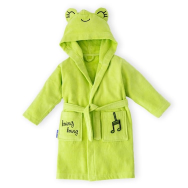 Milk&Moo Cacha Frog Velvet Bathrobe, Green, Kids Bathrobe, Kids Hooded Towel, Suitable for the Ages of 2-4