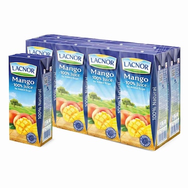 Lacnor No Sugar Added Mango Juice, 180ml Pack of 8