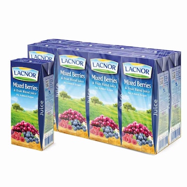 Lacnor No Sugar Added Mix Berry Juice, 180ml Pack of 8