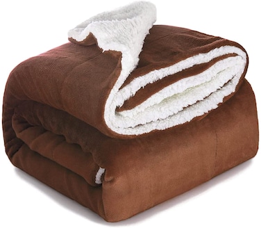 Dream Bell Sherpa Bed Blanket King Size Twin Plush Throw Blanket Fleece Reversible Flannel Blanket - Brown