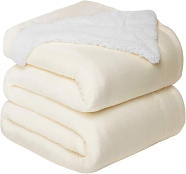 Fabienne Soft Sheep Reversible King Size Sherpa Blanket for Bed Throw Sofa Travel Flannel Blanket Off White 220x240cm
