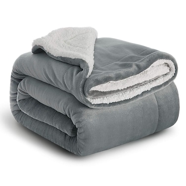 Soft Sheep Reversible Sherpa Blanket Throw Blanket King Size Grey 220x240 cm