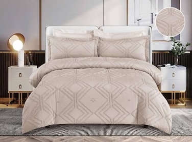 Comfy 6-Pcs Luxurious Cotton King Size Geometric Comforter Set-Beige
