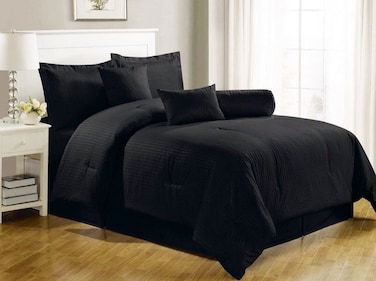 Comfy - Hotel Cotton Satin Stripe 6pcs Comforter Set- Black