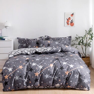 PRODUCT DIMENSIONS - This King size set includes 1 duvet cover 220x240 cm / 1 fitted sheet 200x200+25 cm and 4 pillow cases 48x74 cm / 80 GSM