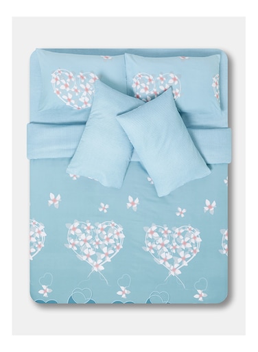 Set Includes:- 1 Duvet Cover - 220X240 Cm 1 Fitted Sheet 200X200+25 Cm 4 Pillow Cases - 48X74 Cm