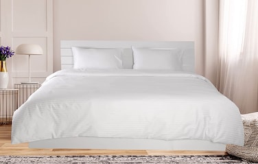 - <p><li>Material is made of 100% Cotton 250TC Sateen 1cm Stripe. Package include 1pc King Duvet Cover 245x265cm<p><li>Luxury quality, silky soft and 100% natural and long-staple cotton, with gorgeous sateen weave, ultra-soft and smooth finished, breathable and long-lasting fabric.<p><li>Duvet Cover is removable and washable, it prolongs the life of your duvet or quilt and keep it from soiling. Now the laundry is easier, lighter, and faster to dry.<p><li>Sateen weave offers a smooth, soft feel and lustrous sheen . Supple and breathable for all-season comfort<p><li>CARE INSTRUCTIONS: Machine wash cold or warm water. Gentle cycle.Wash separately.Do not Bleach.Tumble Dry Low.Medium Iron.Product is made in UAE.