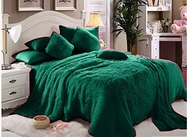 Generic Luxe Soft Faux Fur Sea Six Piece, King Size, Green, W 55.8 X H 48.4 X D 22.8 cm