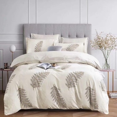 GOLDEN HOME 6-Piece King Size Duvet Cover Set, 1 Duvet Cover + 1 Fitted Sheet + 4 Pillow Cases, Microfibre, Muesli
