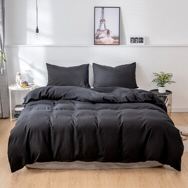 Luna Home Premium King Size 6 Pieces Bedding Set Without Filler, Plain Black Color