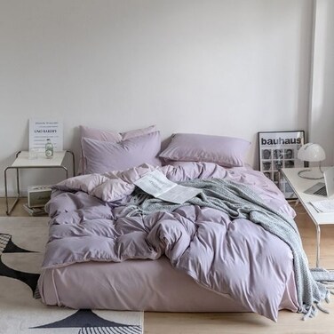 Luna Home-Premium King Size 6 Pieces Korean Reversible Bedding Set, Plain Purple and Light Purple Color.