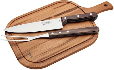 Tramontina Stainless Steel Barbecue Carving Set with Wooden Cutting Board
