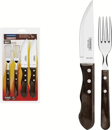 Color:BrownTramontina JUMBO Knives and Forks BBQ Set 4 Pcs Polywood Handles Impact heat and Water Resistant