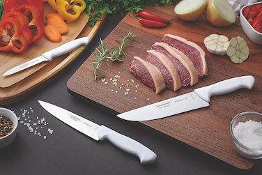 Tramontina Since 1911, Made In Brazil Premium 8 Inches Chef Knife With Stainless Steel Blade And White Polypropylene Handle