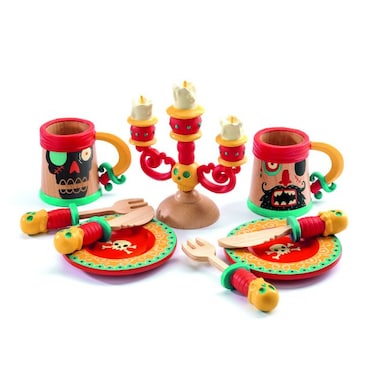 - <p>Ahoy my hearties! Come aboard for a pirate party! Great pirate role play set with a bright skull and crossbones motif. <p>Contains a candelabra, 2 tankards, 2 plates and 2 knives and forks.<p>Suitable From 3+ years<p>Dimensions Box 22 x 18 x 6cm<p>
