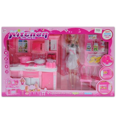 This playset includes a kitchen with various accessories and a doll. Kids can pretend to cook and prepare meals with the realistic kitchen utensils and appliances.