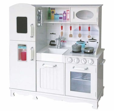 Wooden DollHouse Kit Kitchen white and fridge DIY Toy Realistic 3D with Furnitures Birthday Gift For Girl 94*30*102 CM RW-17533