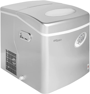 【Technical Specifications】The counter-top ice-maker-storage comes in a semi-glossy silver finish with glossy handles. Net Weight: 14.5 kg. Vesicant: C5H10. Dimensions: 42.4 x 46.6 x 45.6 cm. Capacity: 20 kgs within 24 hours. Voltage 220 - 240 V, Frequency 50/60 Hz. Power: 160W. Ice Making Current 1.0A and Ice Harvest Current 1.2A. Enclosure: Plastic. Refrigerant: R290/33g. Ideal for parties, mocktail nights, tiki bowls, brunches.
