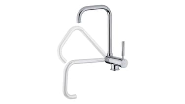 - Under window sink mixer Swivel spout Folding spout: Max. height: 363mm Min. height: 76mm Cartridge starting in cold with ceramic discs Anti-scale aerator Easy-Quick fixation system 3/8" flexible inlet pipes