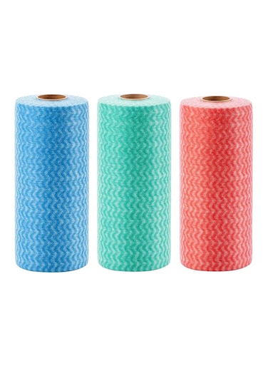 Pack Of 3 Kitchen Disposable Towels Roll, Blue/Green/Red, One Size