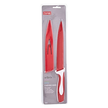 The Prestige Vibro Carving Knife with Cover PR9003 Red and White 20cm is a versatile and high-quality kitchen knife.