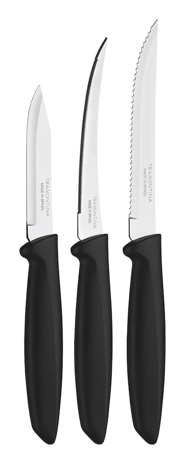 - Add quality and charm to your kitchen with the Plenus Line. Modern and versatile, the flatware sets create a classic look when neutral colors are used, or a more vibrant one if warm and varied colors are preferred. This complete line caters to different uses: from food preparation to table service. The Plenus Line can be used from breakfast to dinner, from a barbecue to a cheese board. The stainless steel blades and polypropylene handles are resistant and comfortable to handle. These items are dishwasher safe.Stainless steel blades. </br>Polypropylene handles. </br>Carbon steel sharpener.