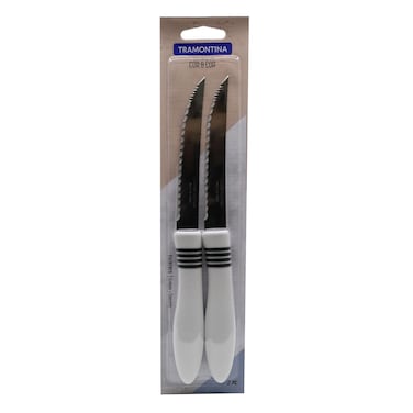 The Tramontina Cor & Cor Micro Serrated Steak Knife White 12.5cm 2 PCS is a high-quality set of steak knives perfect for any kitchen.