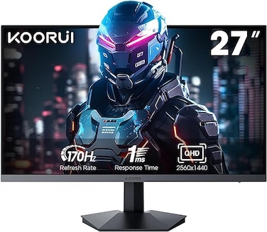 KOORUI GN07 27 inch Gaming Monitor, QHD 2560 x 1440 PC Screen Adaptive-Sync Technology (IPS-Panel, 170Hz, 1ms, DCI-P3 90%, Gsync Compatibility, 2xHDMI, VESA, DisplayPort, Adjustable Tilt)
