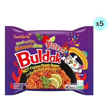 Samyang Buldak Habanero Lime Hot Chicken Flavour Instant Ramen Noodles 135g Pack of 5