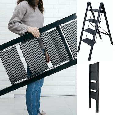 Enhance your daily activities with the HEXAR Multipurpose Step Ladder, a reliable and adaptable solution for various settings. This folding ladder features an anti-slip pedal and a lightweight, portable design, making it an ideal companion for tasks in your home, kitchen, library, or office. With a robust 150 KG capacity, this foldable stepladder ensures both safety and convenience, providing you with a sturdy and efficient tool to reach new heights in your daily routines. Upgrade your access with HEXAR for a seamless blend of functionality and reliability.
