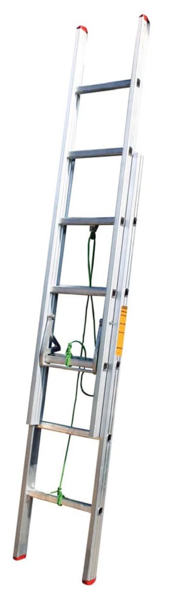 The double extension ladder is compact for easy transportation and storage, and provides access to elevated heights. Features such as a heavy-duty locking system and manual rope operating mechanism, allows the ladder to be safe and easy-to-use. All ladders are made in United Arab Emirates (UAE).