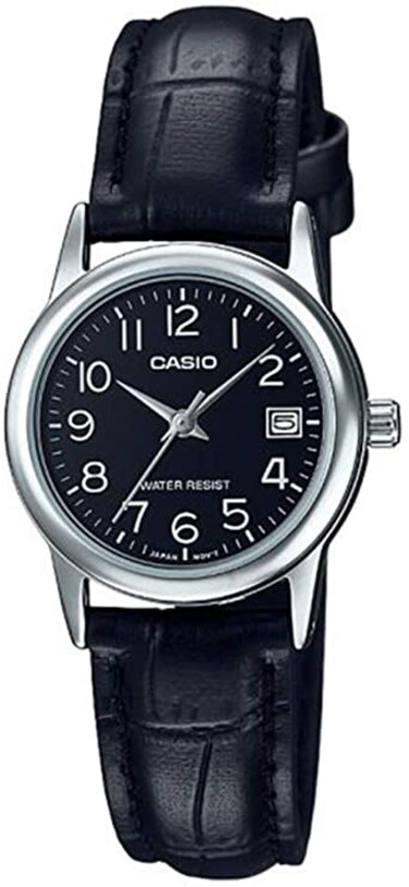 Casio - Women's Quartz Watch, Analog Display And Leather Strap Ltp-V002L-1Budf, Black Band