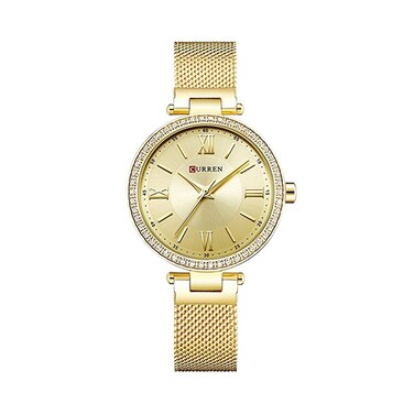Curren - 9011 Quartz Movement Round Dial Stainless Steel Strap Waterproof Women Wristwatch - Gold