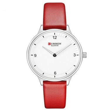 Women Leather Strap Waterproof Stylish Curren Watch 9039 Red