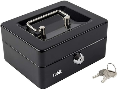 Small Cash Box Steel Register with Tray and Lock (15x12x7.5cm) Black