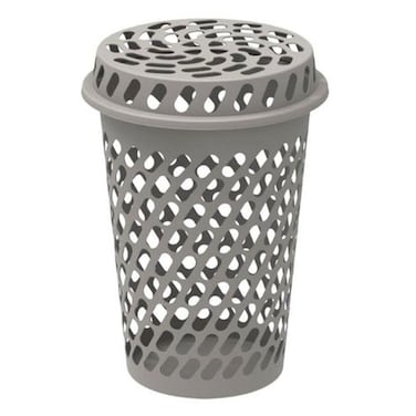 The Cosmoplast Tall Round Plastic Laundry Basket With Lid Grey 69L is a stylish and practical solution for storing and transporting laundry.