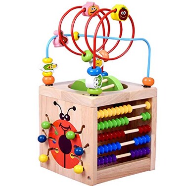 Amagoing 6-in-1 Activity Cube Multifunction Bead Maze Roller Coaster Classic Wooden Educational Toys for Kids