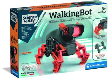 A science kit to build a lovable little robot in a simple and fun way! Contains 40 pieces all to be assembled to bring a little robot to life. A twin-axle motor operates through various gears, enabling the robot to walk. With its moving joints, the little robot actually moves and walks like a real bionic four-legged friend! The illustrated manual is full of scientific information to guide the child in assembling the robot and give an introduction to the world of robotics.