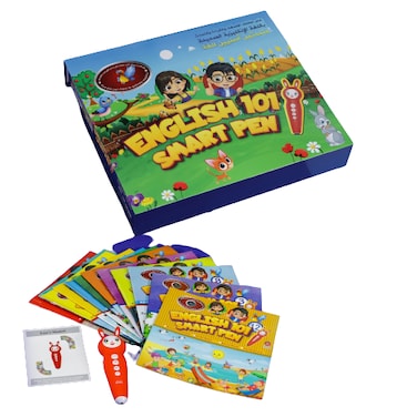 English speaking pen with 12 books for learning conversation and correct pronunciation English language learning book with talking pen provides: audio learning. Parent-child interaction Improve children's hands-on ability, thinking and hearing; inspires children's potential; Encourages interest in learning. Rich content: The book includes: English alphabet. the animals; - Preparation; -family members; -fruit; - Transportation; - english songs; English stories. -the exams. INTERACTIVE PEN: The battery-operated interactive pen is equipped with a high-quality speaker, LED light, and a dot reader. INTERACTIVE BOOK: The book includes a question and answer area on the left-hand side pages and an interactive touchpad area with content, operated with fingers, on the right-hand side pages. Control buttons: Control buttons are located at the top of the book: volume up, volume down, read, ask, and toggle. Buttons operate at the touch of a finger. The Read button will say whatever is on the page. The "Question" button will ask a question like "Where is my uncle?" And the child needs to point the correct answer on the page with his finger. SWITCH turns to the page you opened and launches the current page. 1- The children's reading pen is a new innovation for language learning. 2- The talking pen allows learners to listen to the original pronunciation of the word. 3- By pointing the pen at the words in the textbooks, users can listen to the words, sentences, paragraphs, pages or entire chapters at a time. In addition, the shape of the talking pen for kids is simple and has few buttons which is better for kids to handle and hold.