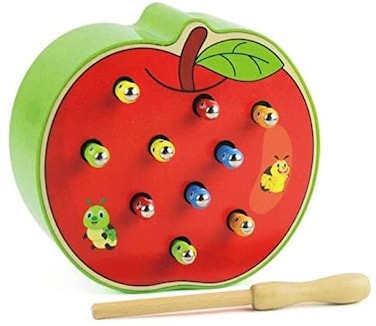 Jmd Kids Wooden Toys Catch Worms Games With Magnetic Stick Montessori Educational Creature Blocks Interactive Toys (Apple)