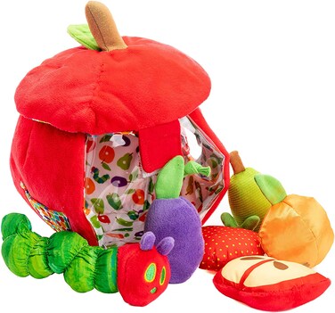 Eric Carle is one of the most celebrated children's book authors and illustrators of all time, with over 103 million copies of his books sold worldwide. Inspired by the classic book, The Very Hungry Caterpillar, this The World of Eric Carle Apple Play Set and Shape Sorter Developmental Toy will keep little ones entertained and amazed as they play with the five different pieces of fruit that crinkle, squeak and jingle and one very hungry caterpillar that can peek through the side opening or crawl in through the Velcro top. With a clear front panel for easy view and a fluffy stuffed top, this bright red apple is ready for play!