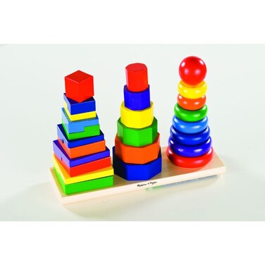 - Stacking and matching blocks made of high quality solid wood in different sizes, shapes and colors give children hours of funs.