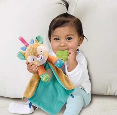 3-in-1 play: unfolded, it’s a soft security blanket and teething toy or dummy cifier holder; fold up to create a woodland companion