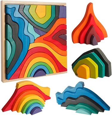 What better way to introduce your little ones to four of the most important elements in our universe! This beautiful large set comes with 4 different sections: The orange section to represent flames of fire, the blue section to represent water/sea/ocean, the rainbow section to represent the sky or the air and the green section to represent earth and rocks. The set guarantees open-ended fun and endless ways to play; it sparks creativity and is an introduction to teach little ones about mother Earth. Combine this set with other elements to make a full scenario and be able to tell a story while playing. It's also a great way to teach kids the concepts of sizes and colors.